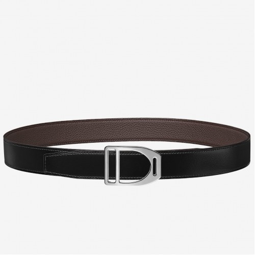 Perfect for men seeking an understated look, this Replica Handbag Store Etrier buckle belt features reversible leather strap 32 mm in clemence and black box calfskin leather.