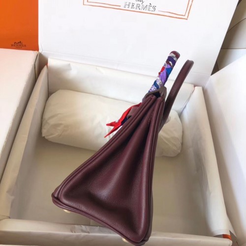 Replica Handbag Store Birkin 25 Handmade Bag In Burgundy Swift Leather