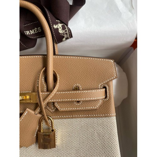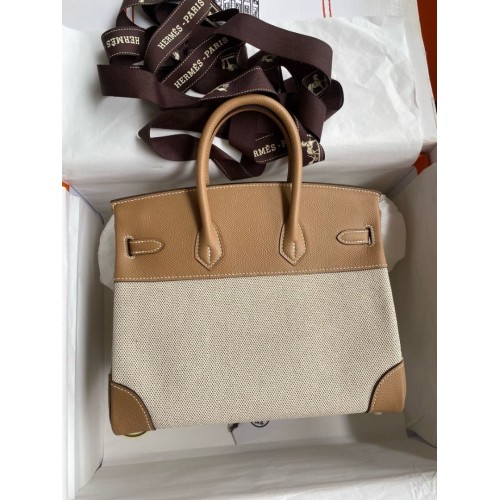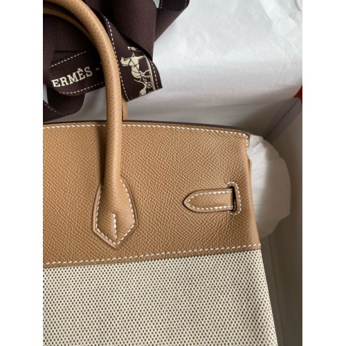 Replica Handbag Store Birkin 30 Handmade Bag In Toile & Chai Epsom Leather