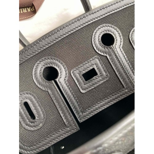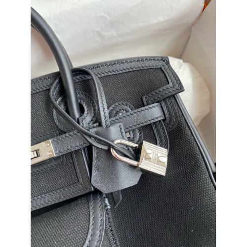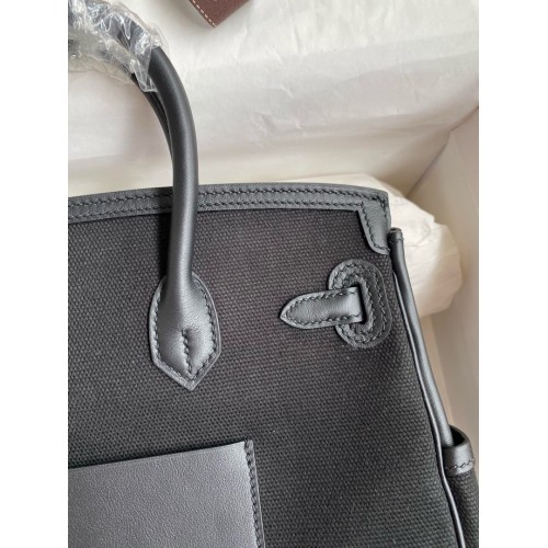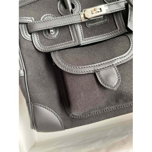 Replica Handbag Store Birkin Cargo 25 Bag in Black Toile and Swift Leather