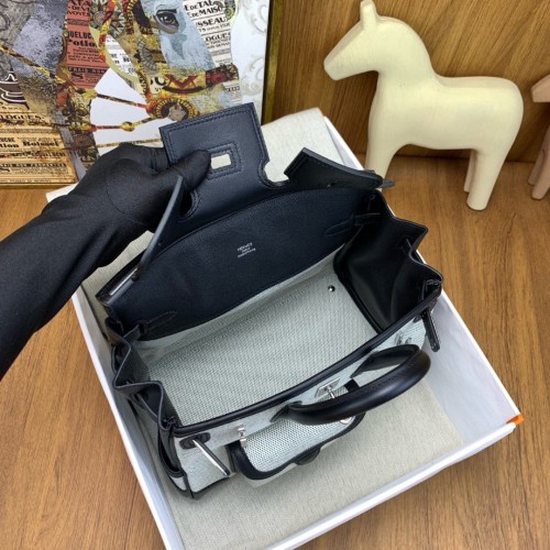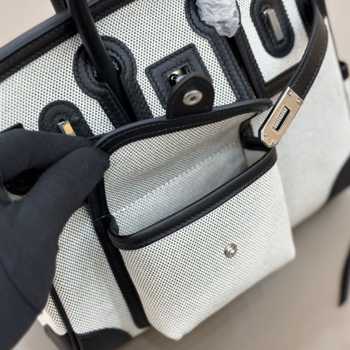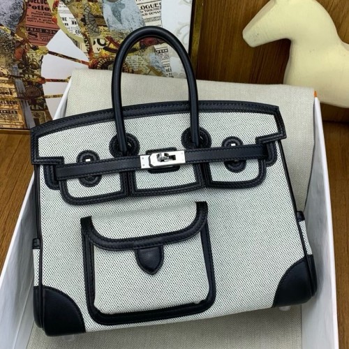 Tags: Replica Handbag Store Birkin Cargo 25 Bag in Ecru Toile and Black Swift Leather, Birkin 25cm