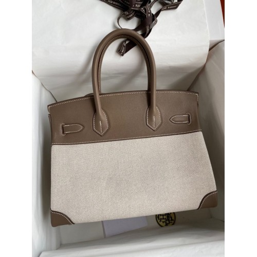 Replica Handbag Store Birkin 30CM Handmade Bag In Toile & Gold Swift Leather