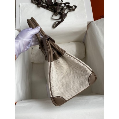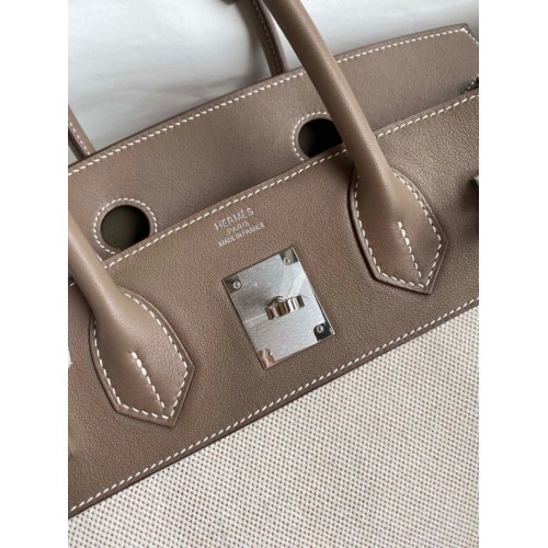 Replica Handbag Store Birkin 25 Handmade Bag In Toile & Biscuit Swift Leather