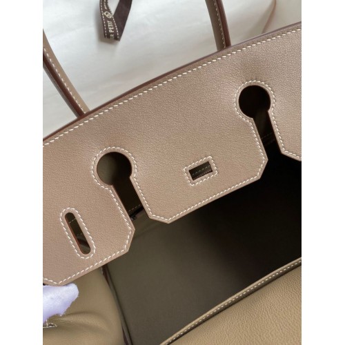 Replica Handbag Store Birkin 25 Handmade Bag In Toile & Chai Epsom Leather