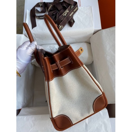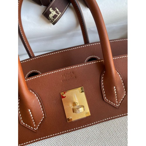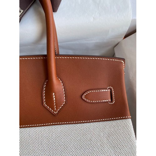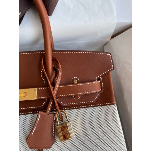 Replica Handbag Store Birkin 30CM Handmade Bag In Toile & Gold Swift Leather