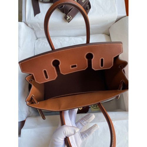 Tags: Replica Handbag Store Birkin 30CM Handmade Bag In Toile & Gold Swift Leather, Birkin 30cm