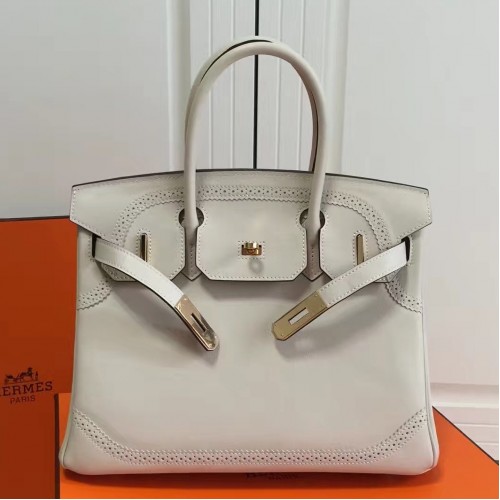 Replica Handbag Store Birkin Ghillies 30cm In White Swift Leather