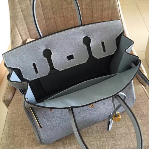 Replica Handbag Store Blue Lin Clemence Birkin 30cm Handmade Bag
