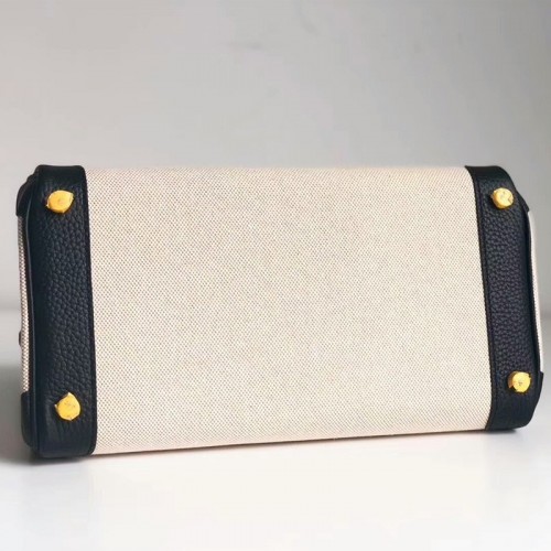 Replica Handbag Store Canvas Birkin 30cm 35cm Bag With Black Clemence Leather