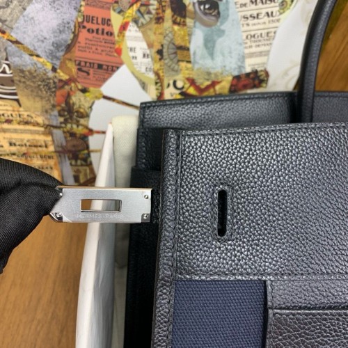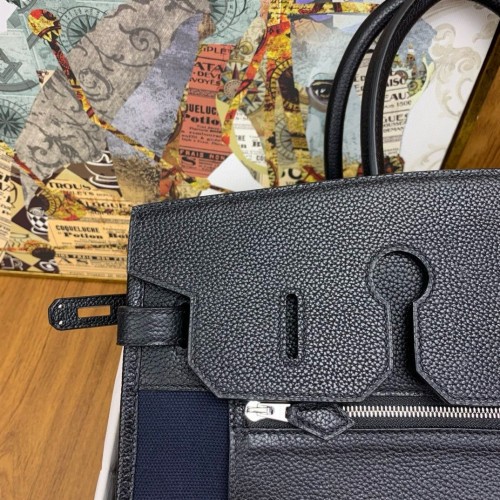 Tags: Replica Handbag Store Birkin à l’envers 35 Bag in Black Clemence Leather and Canvas, Birkin 35cm