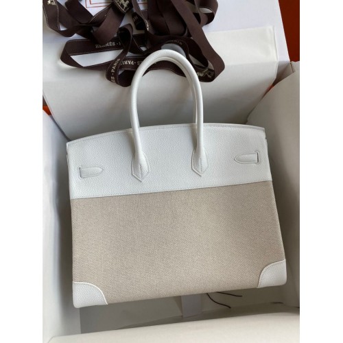 Replica Handbag Store Birkin 35 Handmade Bag In Toile & White Clemence Leather