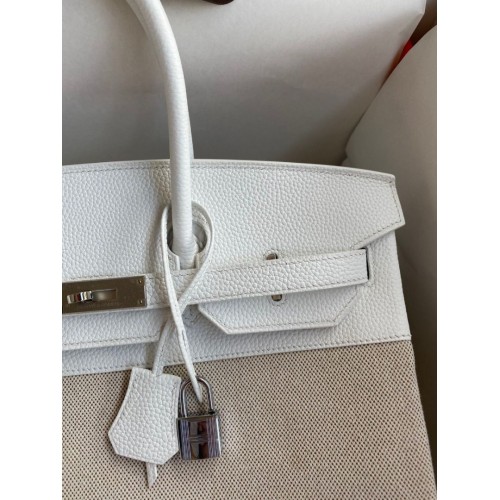 Tags: Replica Handbag Store Birkin 35 Handmade Bag In Toile & White Clemence Leather, hermes birkin 35,