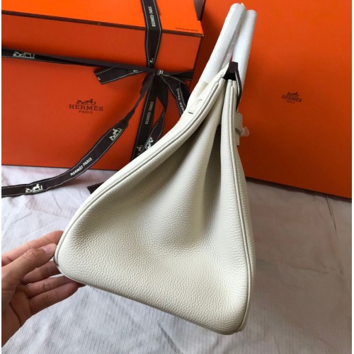 Replica Handbag Store Birkin 40 Handmade Bag In White Clemence Leather