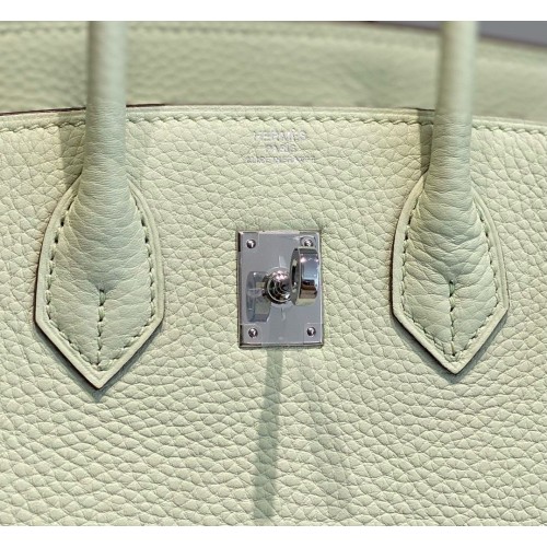Replica Handbag Store Birkin 25cm Bag In Vert Fizz Clemence Leather