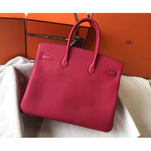 Replica Handbag Store Birkin 30cm 35cm Bag In Rose Red Clemence Leather
