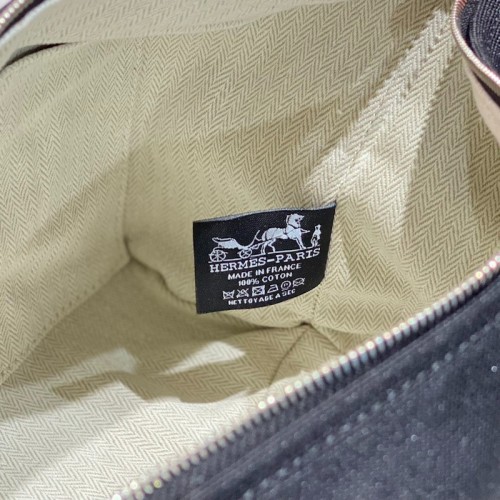 The beauty of this Hermès Bride-a-Brace large case lies in its striking and versatile design. Created from canvas, it is added with a bi-colored handle that can be buttoned inward and the logo detailing on the front offers it a touch of exclusivity. The lined interior of the bag is secured by a zipper closure at the top.