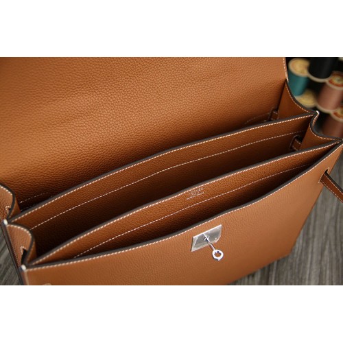 Replica Handbag Store Kelly Depeche 34 Briefcase In Brown Calfskin