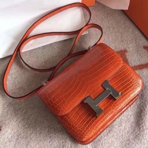 Replica Handbag Store Constance 24cm Orange Porosus Crocodile