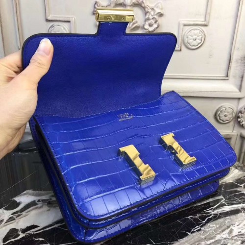 Replica Handbag Store Blue Lin Constance MM 24cm Crocodile Bag