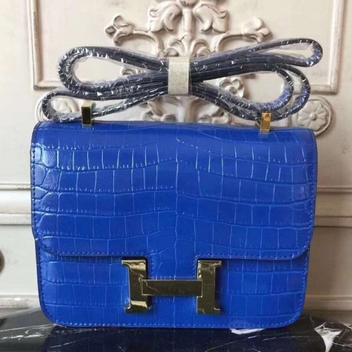 Replica Handbag Store Blue Constance MM 24cm Crocodile Bag