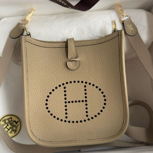 The Hermès Evelyne TPM, also known as the Hermès Evelyne Mini or Evelyne 16, is the smallest of the Evelyne line. As a “fashion” bag, the signature perforated “H” was now intended to be turned around and shown to the world. The addition of a crossbody strap and a mini size increased demand for the bag among fashionistas worldwide. The minimalist style and streamlined silhouette have made the Hermès Evelyne Mini the most popular of the non-quota bags the design house offers.