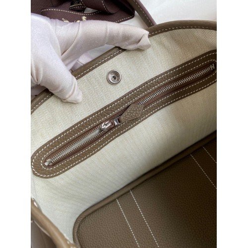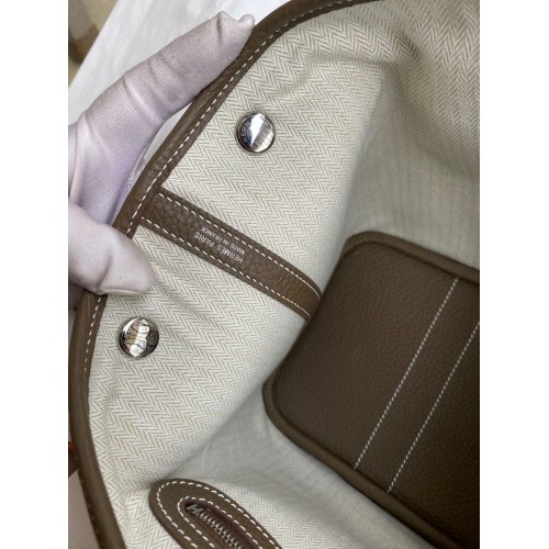Replica Handbag Store Garden Party 30 Handmade Bag in Toile and Taupe Leather