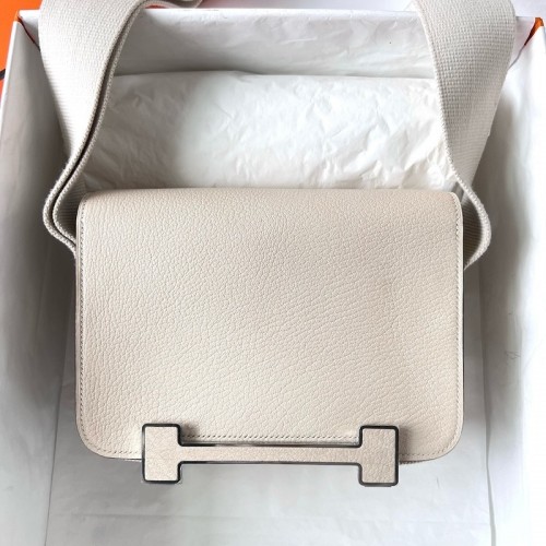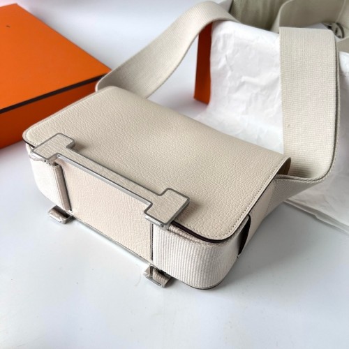 Embrace a cool and edgy vibe with the Hermès Geta. A more casual bag than other Hermès styles, it fills a crucial niche in your wardrobe. It is handcrafted from luxurious Chèvre Mysore goatskin with a grain that softens over time. The bag’s design was inspired by Japanese wooden platform sandals. The chic H closure is repeated on the back. Set low on the bag, the metal hardware is inset with leather matching the bag. The “legs” of the H closure also serve at the bag’s feet, raising the bottom of the bag up off any surface you place it on.