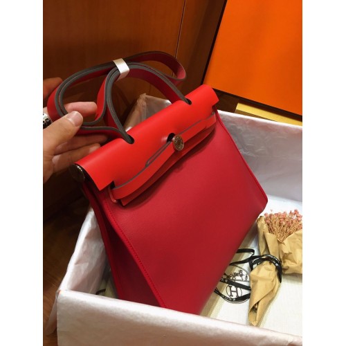 Replica Handbag Store Herbag Zip 31cm Bag In Red Toile And Leather