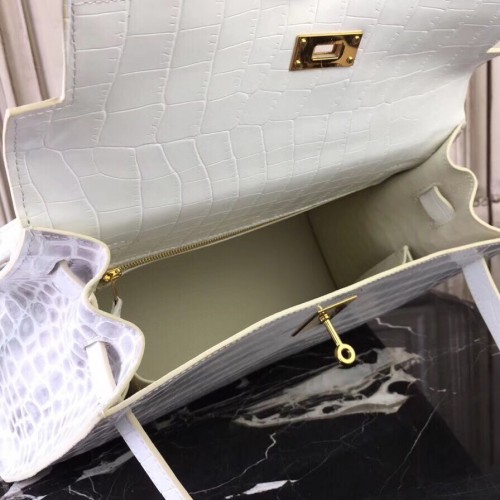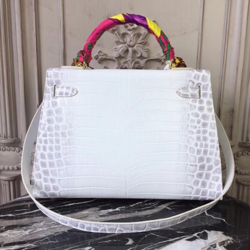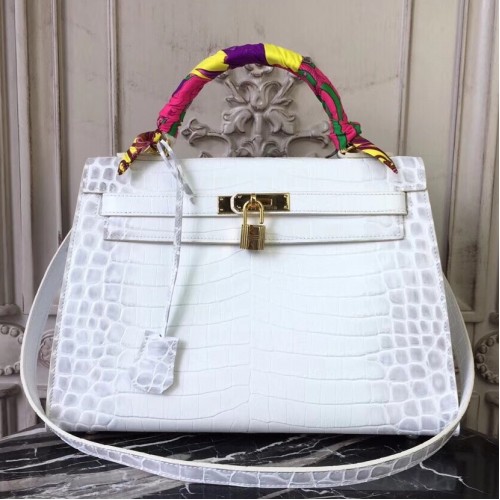 Replica Handbag Store Kelly 32cm Bag In White Crocodile Leather