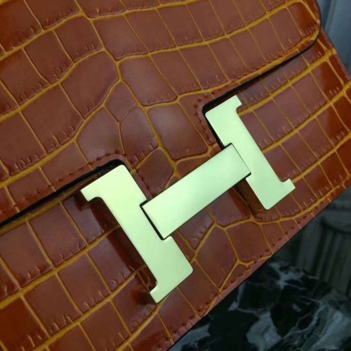 Replica Handbag Store Orange Constance MM 24cm Crocodile Bag