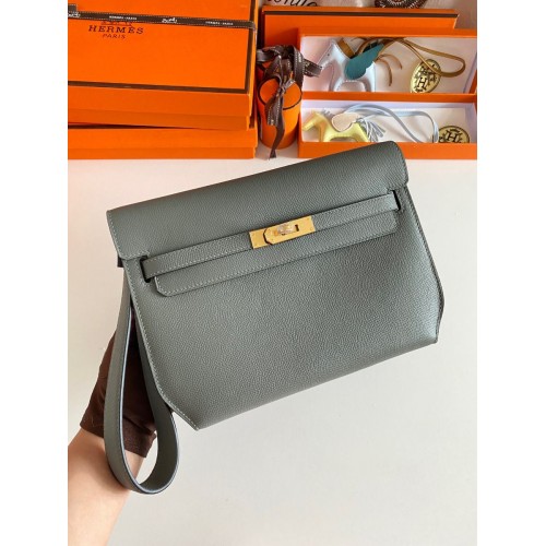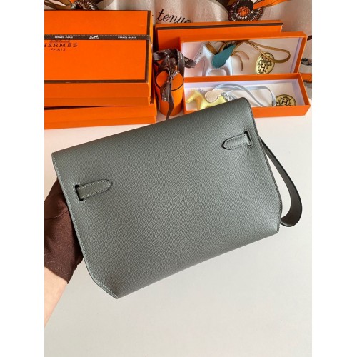 Replica Handbag Store Kelly Depeches 25 Pouch in Vert Criquet Epsom Calfskin
