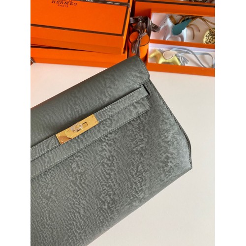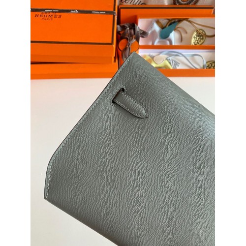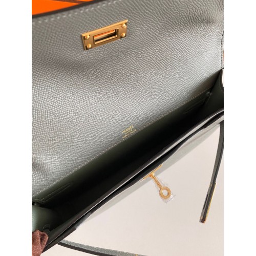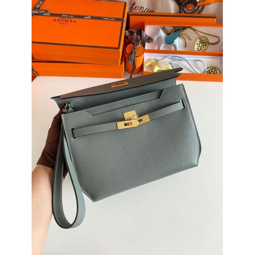 Replica Handbag Store Kelly Depeches 25 Pouch in Vert Amande Epsom Calfskin