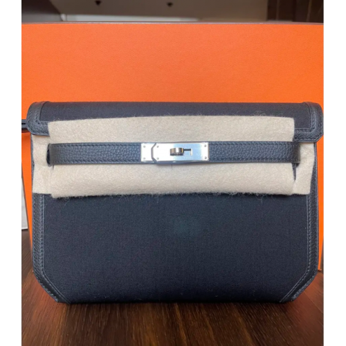 Replica Handbag Store Kelly Depeches 25 Pouch in Blue Jean Epsom Calfskin