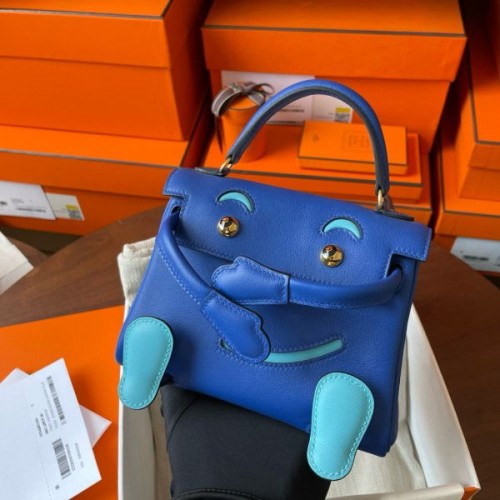 Replica Handbag Store Kelly Doll Quelle Idole Bag in Blue Swift Calfskin