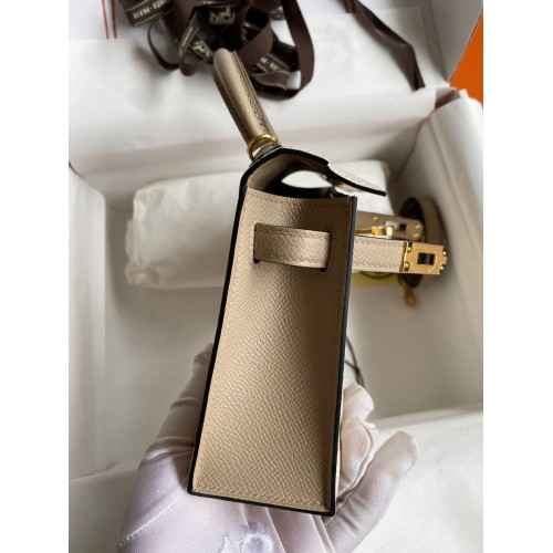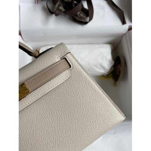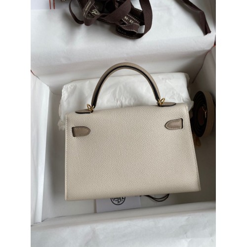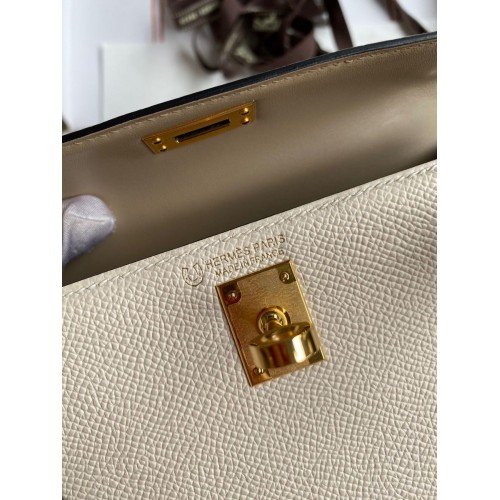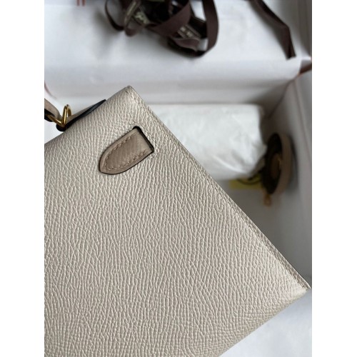 Tags: Replica Handbag Store Kelly Mini II Sellier Bicolor Handmade Bag in Craie and Trench Epsom Calfskin, Kelly 20cm