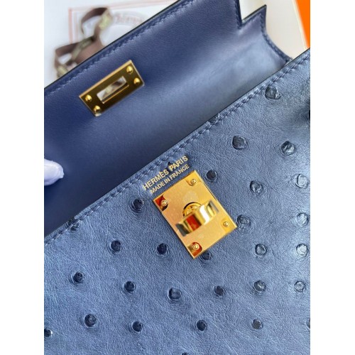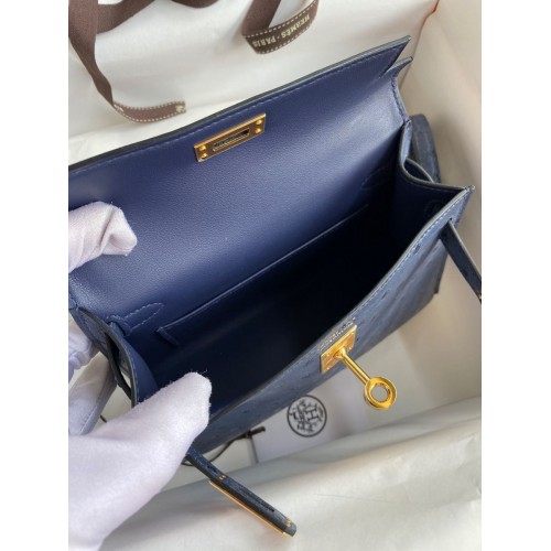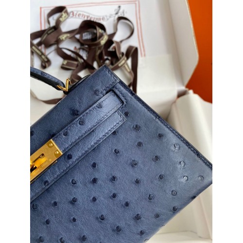 Tags: Replica Handbag Store Kelly Mini II Sellier Handmade Bag In Blue Iris Ostrich Leather, Replica Hermes, Kelly 20cm