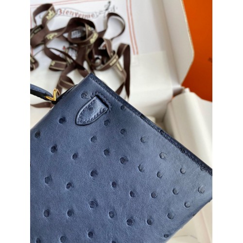 Replica Handbag Store Kelly Mini II Sellier Handmade Bag In Blue Lin Ostrich Leather