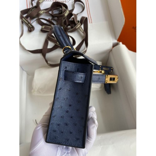 Replica Handbag Store Kelly Mini II Sellier Handmade Bag In Blue Electric Ostrich Leather