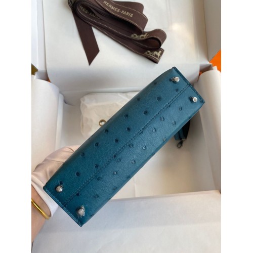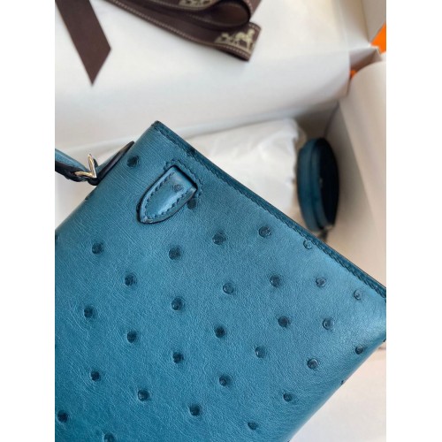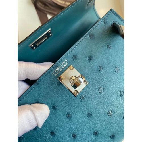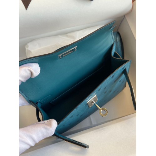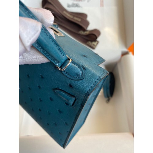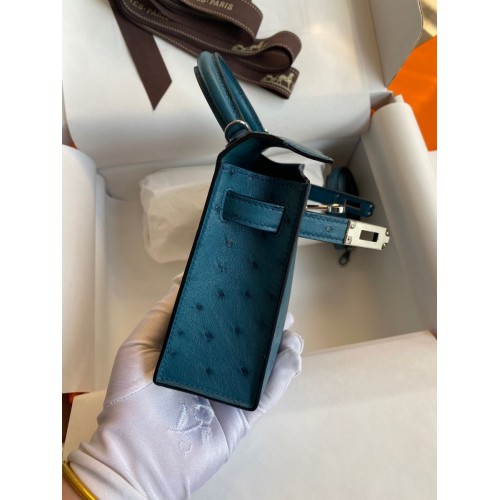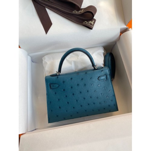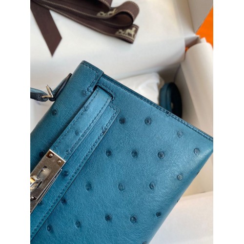 Replica Handbag Store Kelly Mini II Sellier Handmade Bag In Bleu Glacier Ostrich Leather