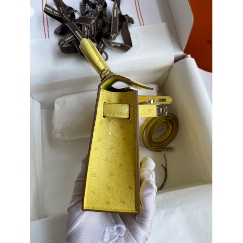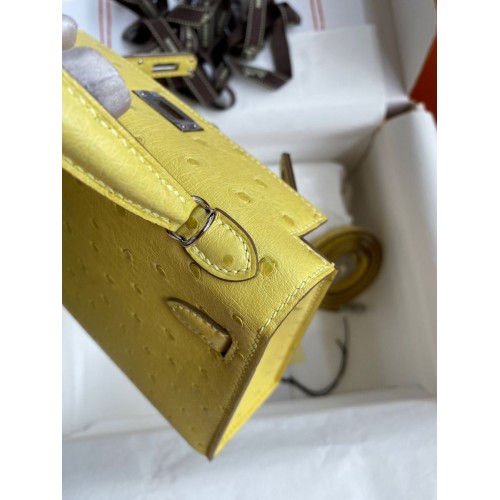 Replica Handbag Store Kelly Mini II Sellier Handmade Bag In Lime Ostrich Leather