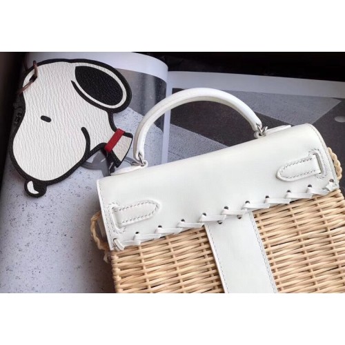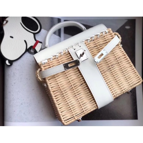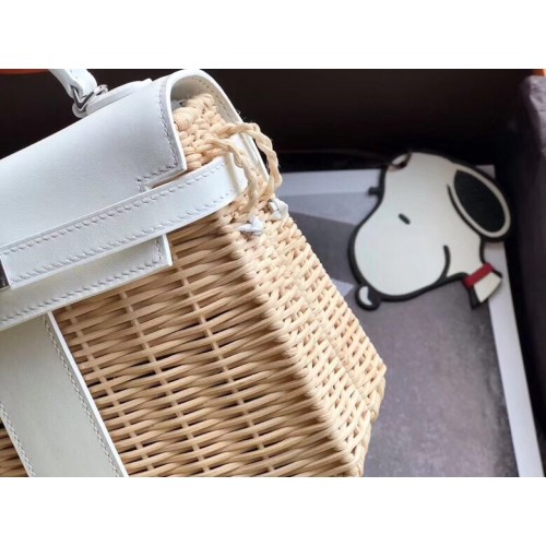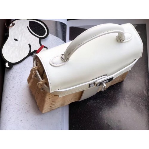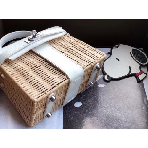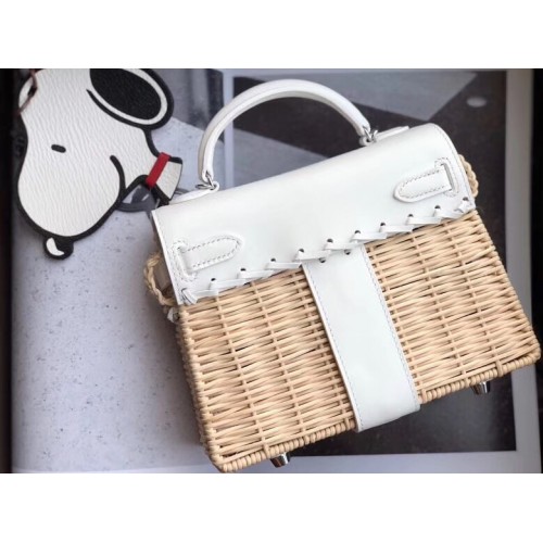 Replica Handbag Store White Picnic Kelly Mini 20cm Wicker Bag