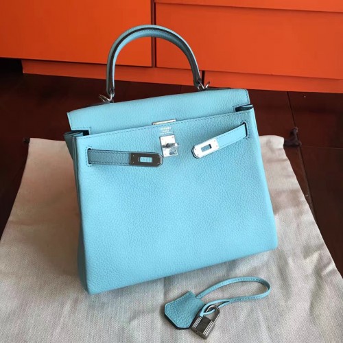 Replica Handbag Store Blue Clemence Kelly 25cm Retourne Handmade Bag