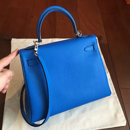 Replica Handbag Store Blue Clemence Kelly 25cm Retourne Handmade Bag