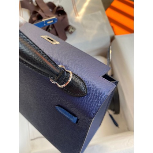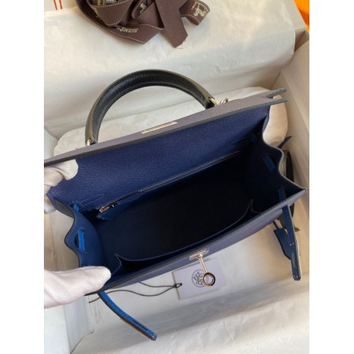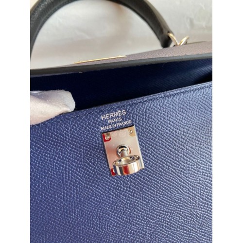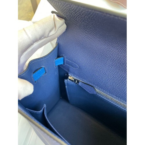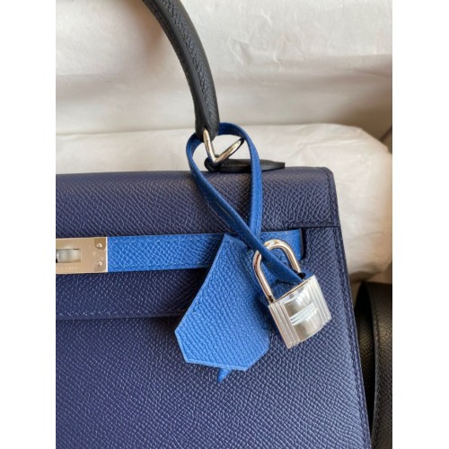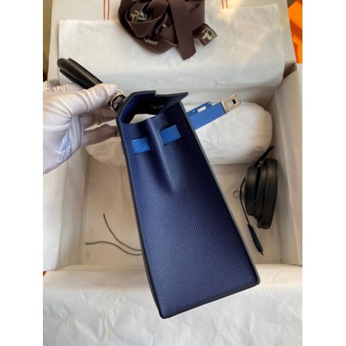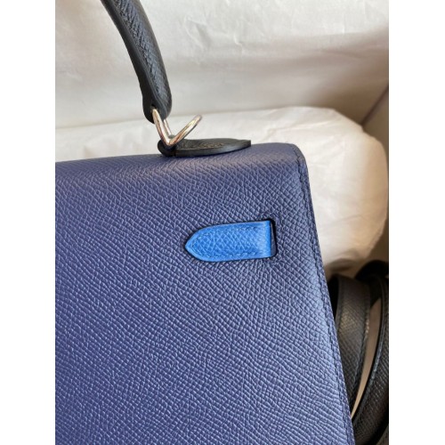 Replica Handbag Store Kelly Sellier 25 Bicolor Bag in Blue Saphir and Blue France Epsom Calfskin