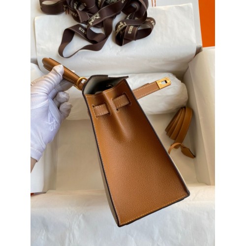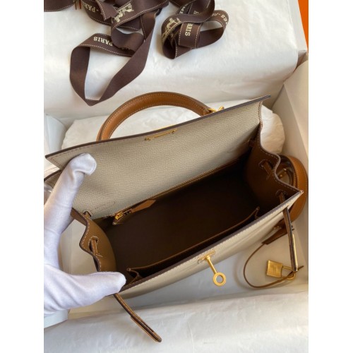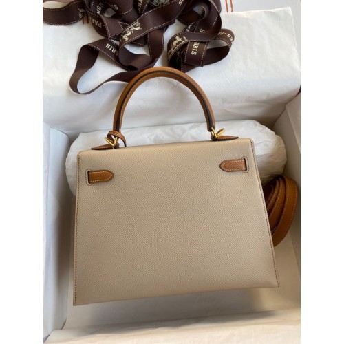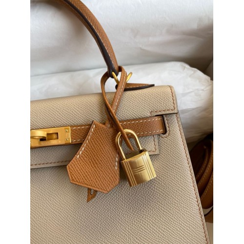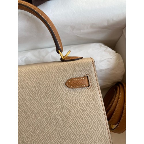 Tags: Replica Handbag Store Kelly Sellier 25 Bicolor Bag in Trench and Gold Epsom Calfskin, Kelly 25cm