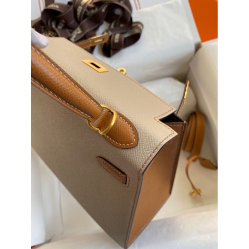 Replica Handbag Store Kelly Sellier 25 Bicolor Bag in Trench and Taupe Epsom Calfskin