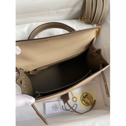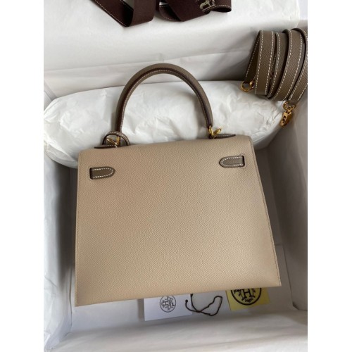 Tags: Replica Handbag Store Kelly Sellier 25 Bicolor Bag in Trench and Taupe Epsom Calfskin, Kelly 25cm