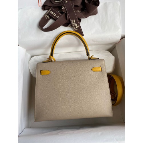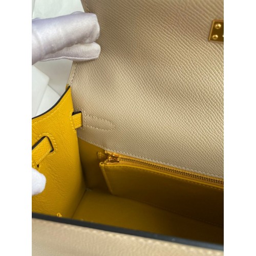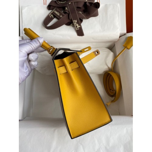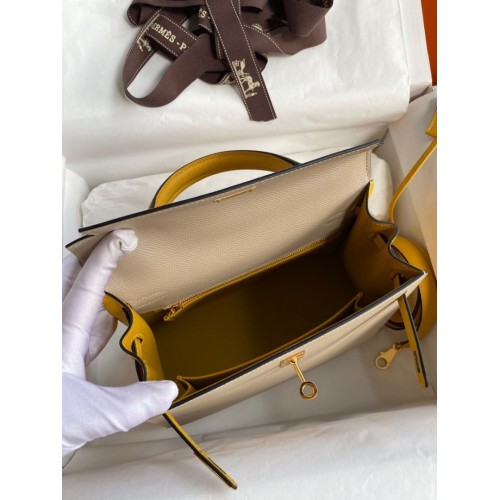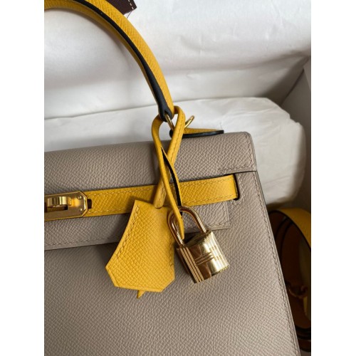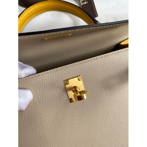 Tags: Replica Handbag Store Kelly Sellier 25 Bicolor Bag in Trench and Yellow Epsom Calfskin, Kelly 25cm
