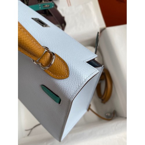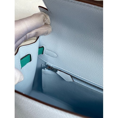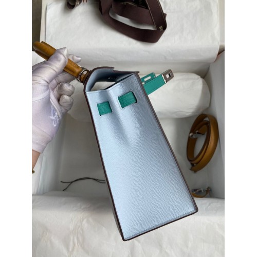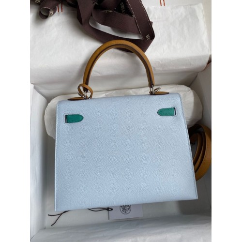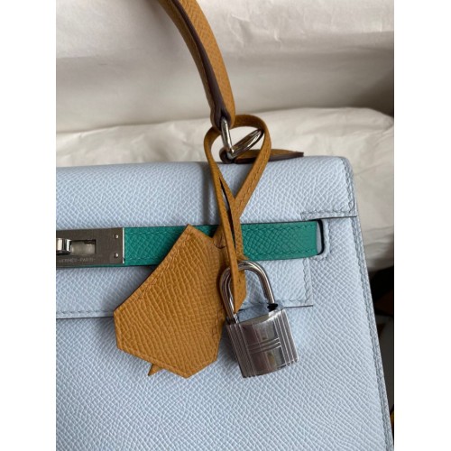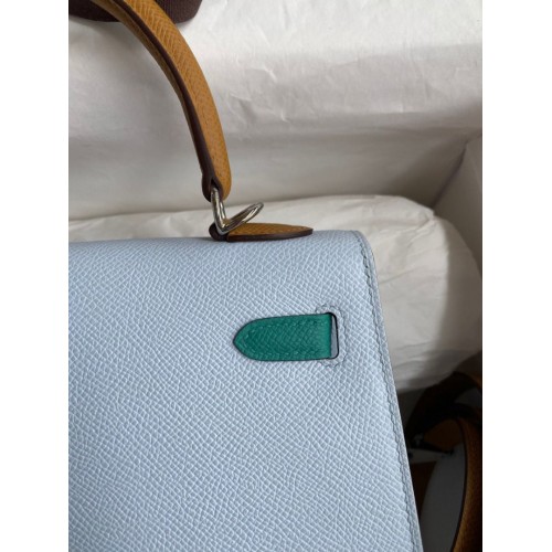 Tags: Replica Handbag Store Kelly Sellier 25 Tricolor Bag in Blue/Green/Sesame Epsom Calfskin, Kelly 25cm