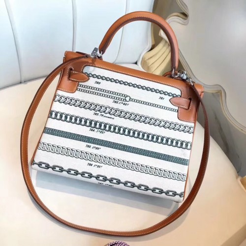 Replica Handbag Store Kelly 28cm De Camp Dechainee Toile Bag